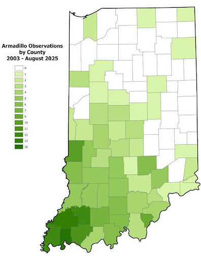 Despite armadillos being spotted locally, the likelihood is that their longevity will die out eventually–just as they did 40,000 years ago. The winter climates common to this area will likely prove to be too harsh for their survival, so they will move on. Until then, however, the harshest adversary that an armadillo will likely encounter in the Hoosier State is the bumper of a car.